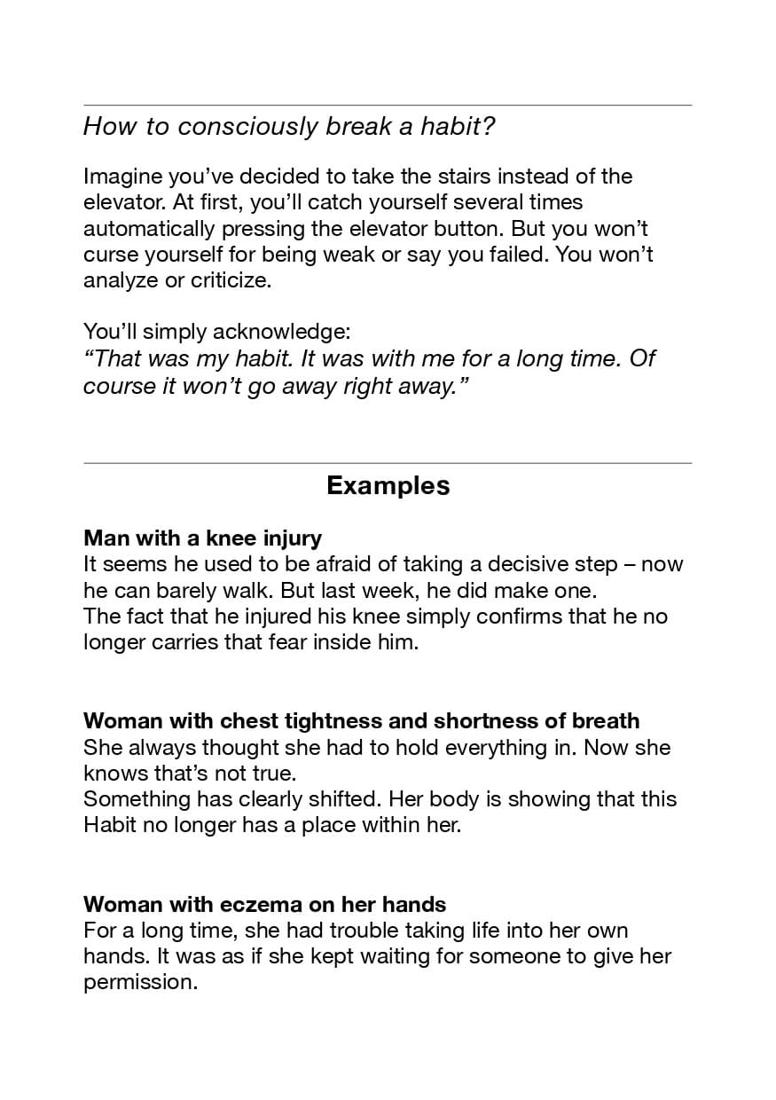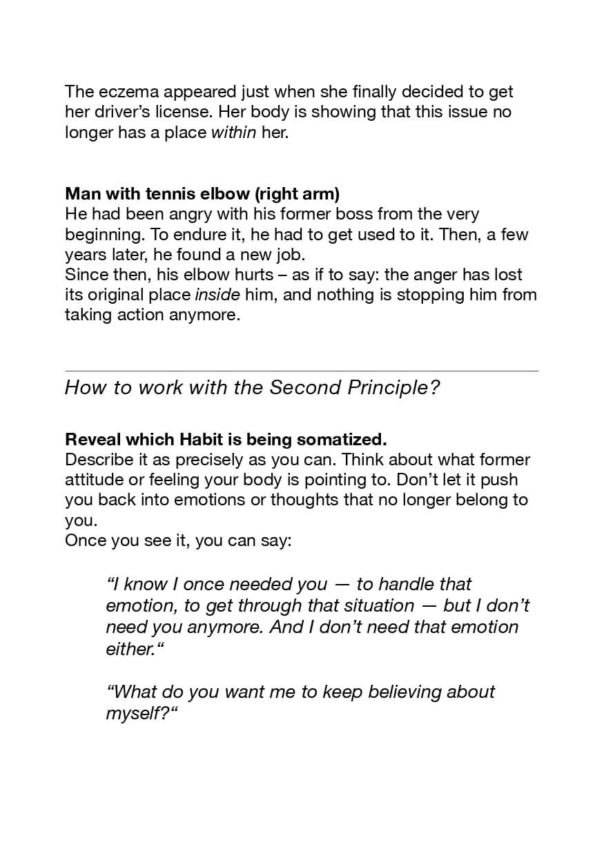 Through various approaches — emotional, mental, and spiritual — I came to my own understanding of psychosomatics after about fifteen years of practice: